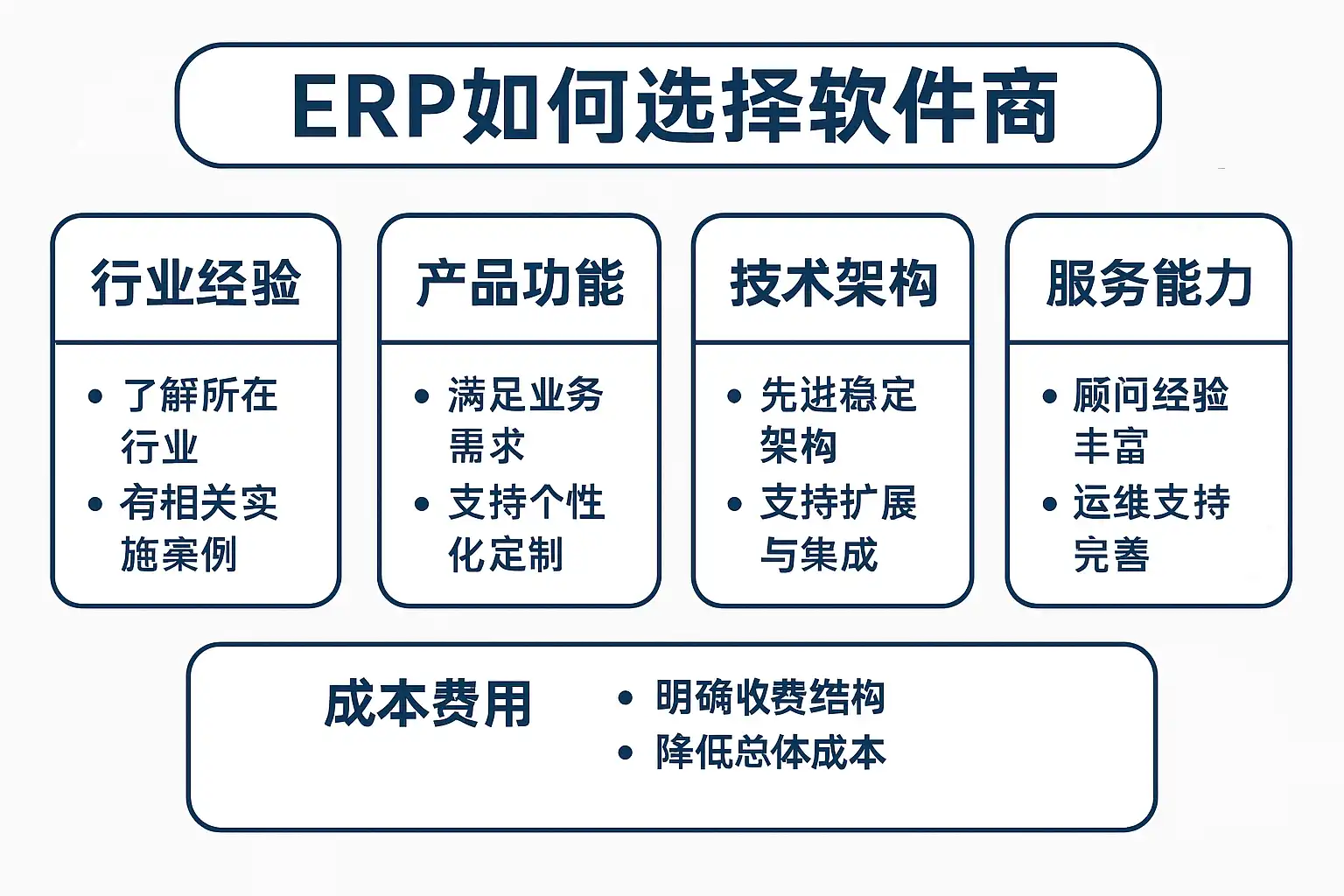 主要观点回顾: 选择合适的ERP软件商,应聚焦于产品贴合自身业务场景(尤其是能灵活适应变化)、厂商具备强大实施交付能力,以及技术平台开放易扩展。兼顾价格合理、安全可靠,以及良好的市场口碑,将极大提高项目成功概率。
