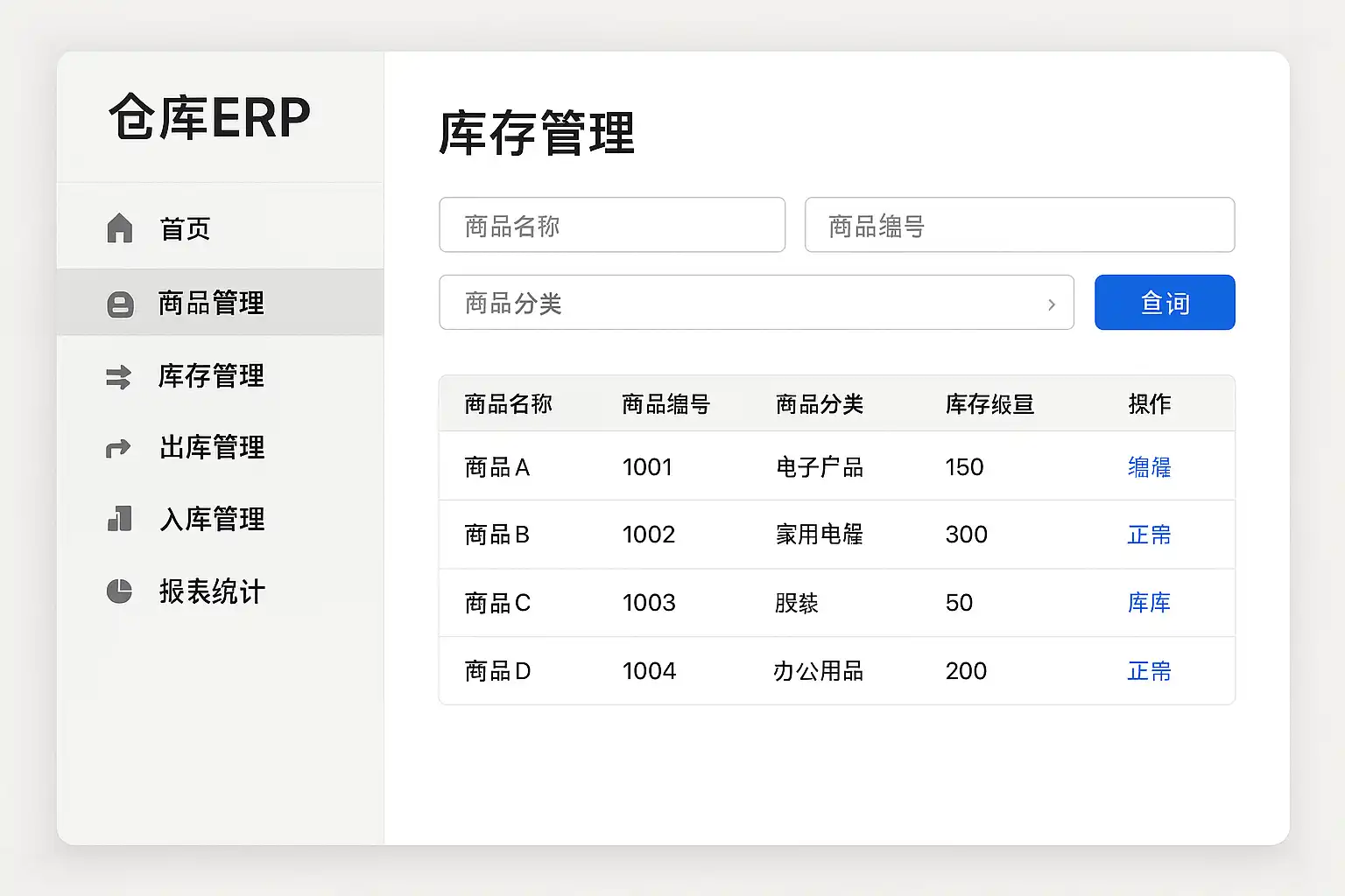 - 报表分析工具,通过图表展示库存周转率、滞销品比例等关键指标;