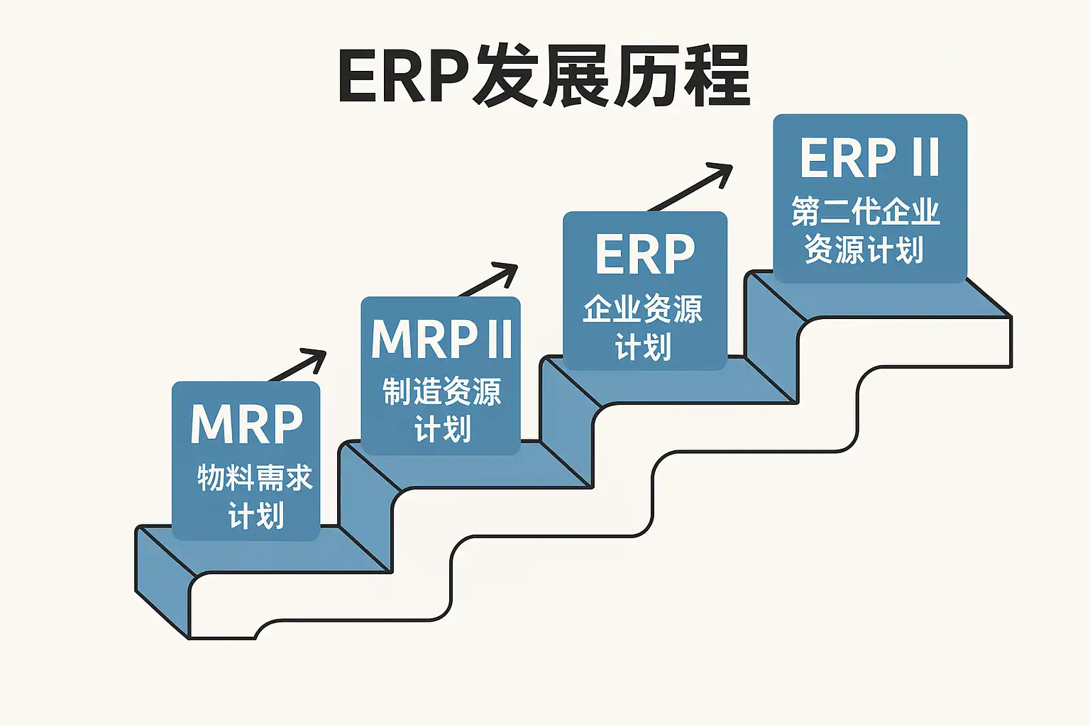 - 早期MRP阶段(20世纪60-70年代):以物料需求计划(MRP)为核心,解决生产制造中的库存和物料管理问题。