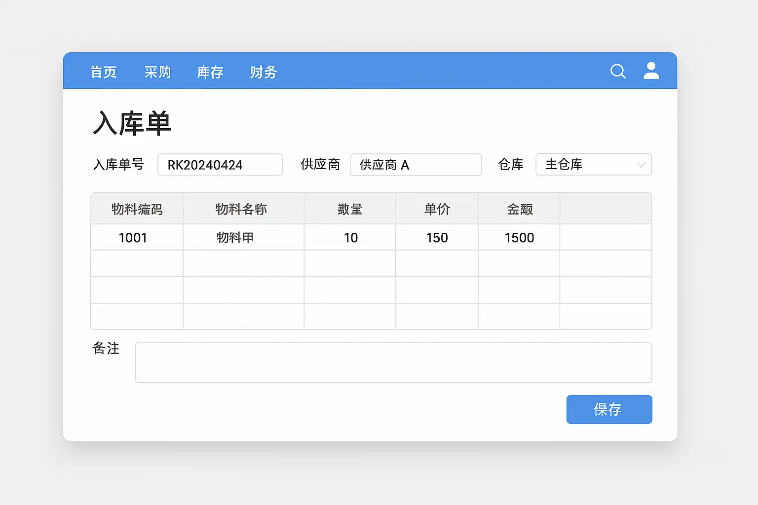 | 采购入库 | 根据采购订单接收供应商发货商品 | 新购进原材料或成品 |