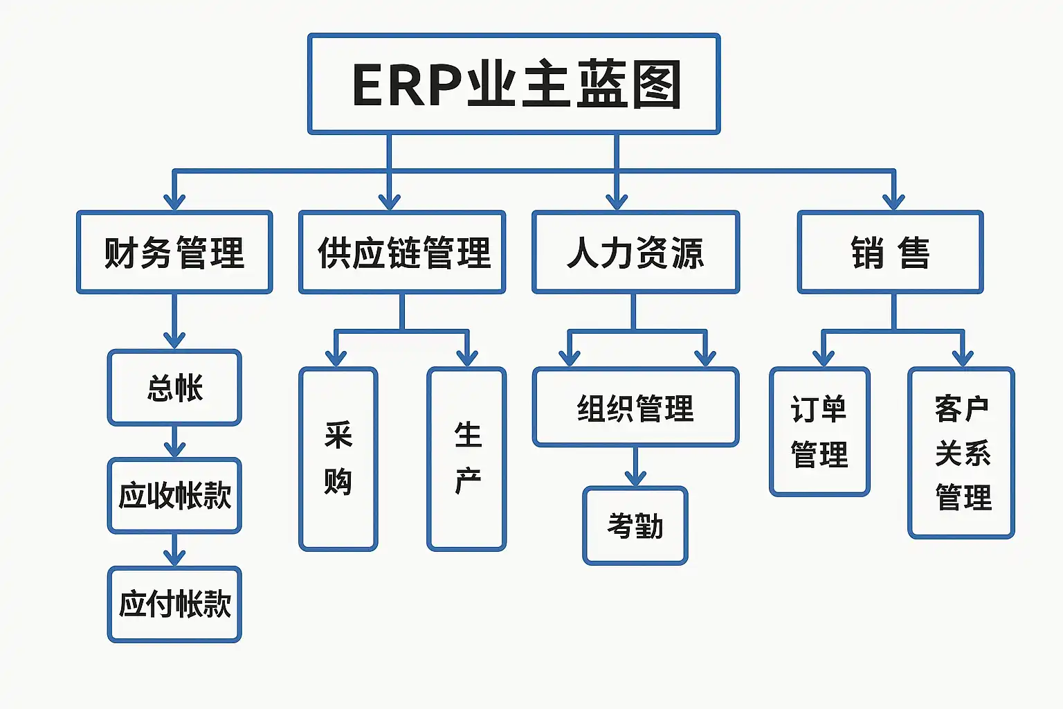 ERP(Enterprise Resource Planning,企业资源计划)业主蓝图,是指在实施ERP项目时,由业主方(企业自身)牵头制定的一套指导性文档或方案。它详细描述了企业各业务模块的现状流程、未来业务目标、组织结构调整、数据标准,以及与信息化系统集成点等,为后续系统选型开发和实施落地提供清晰指南。
