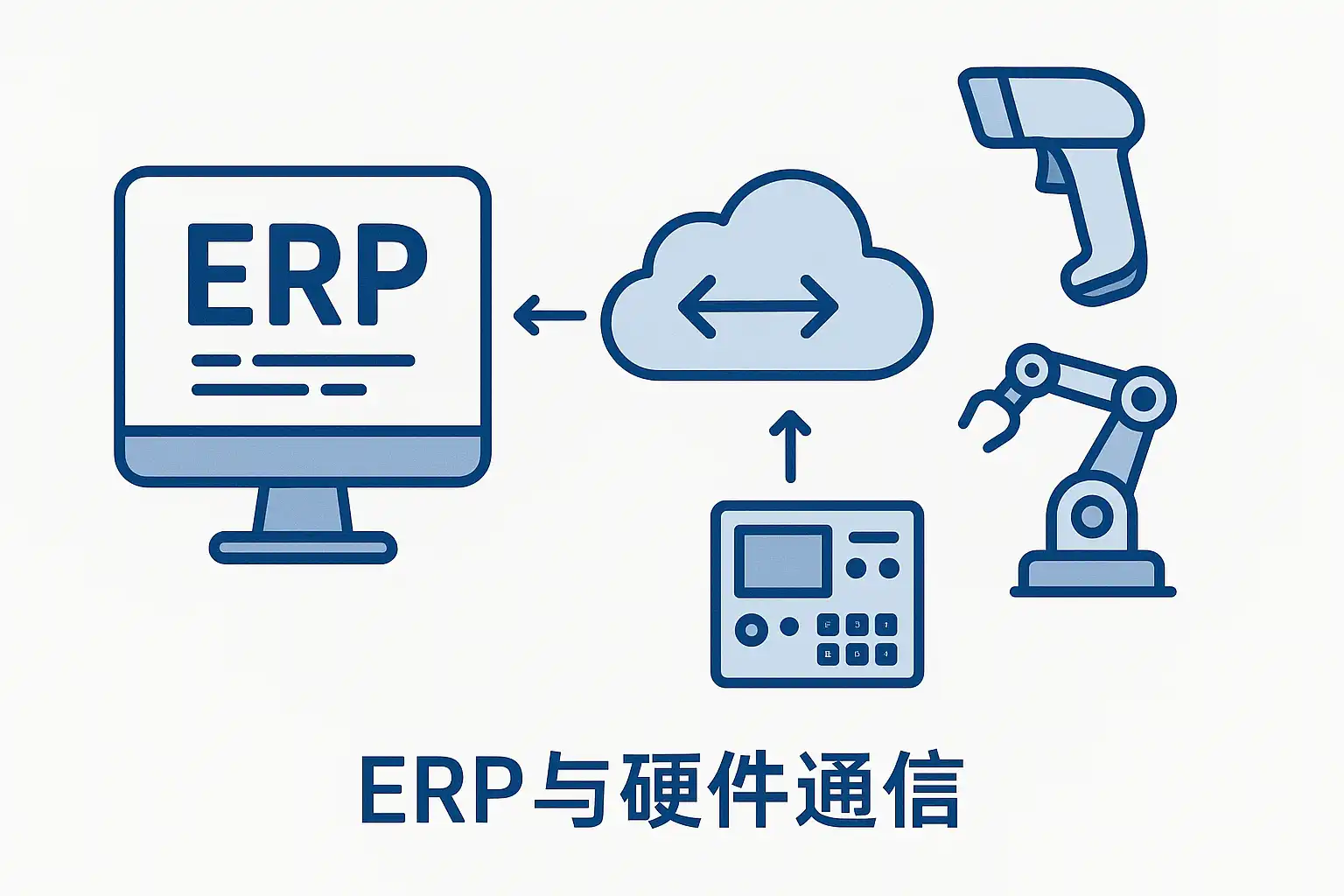 ERP系统通过多种通信协议(如串口通信、以太网、蓝牙等)与硬件设备实现数据交换。常见的实现方式包括:
