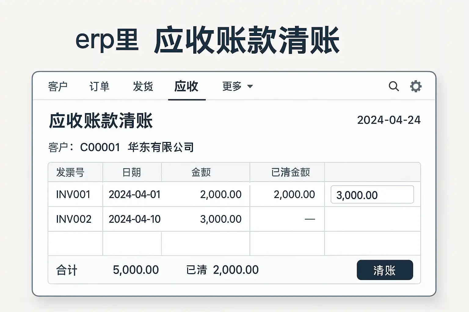 我在使用ERP系统管理企业财务时,发现应收账款的清账操作比较复杂,不太清楚具体步骤和注意事项。ERP里应收如何清账才最有效率?