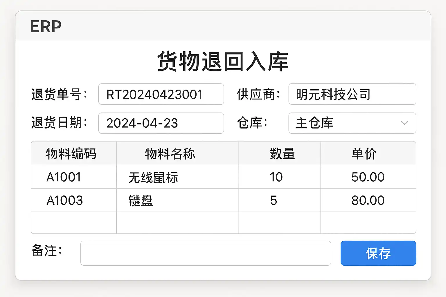 在ERP环境下,商品或原材料的“退回”通常分为采购退货(向供应商)和销售退回(客户返还)。不同业务场景下,操作流程略有差异,但基本环节一致: