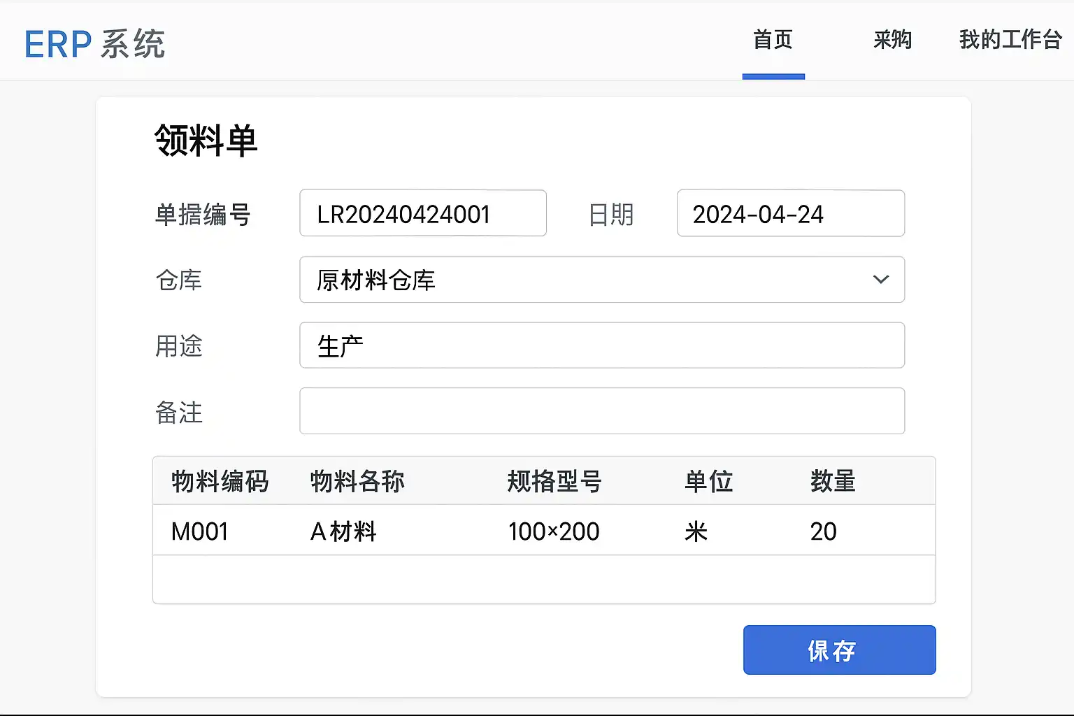 - 审批同意后,系统直接生成正式的“领料单”,并发送至仓储端待办。