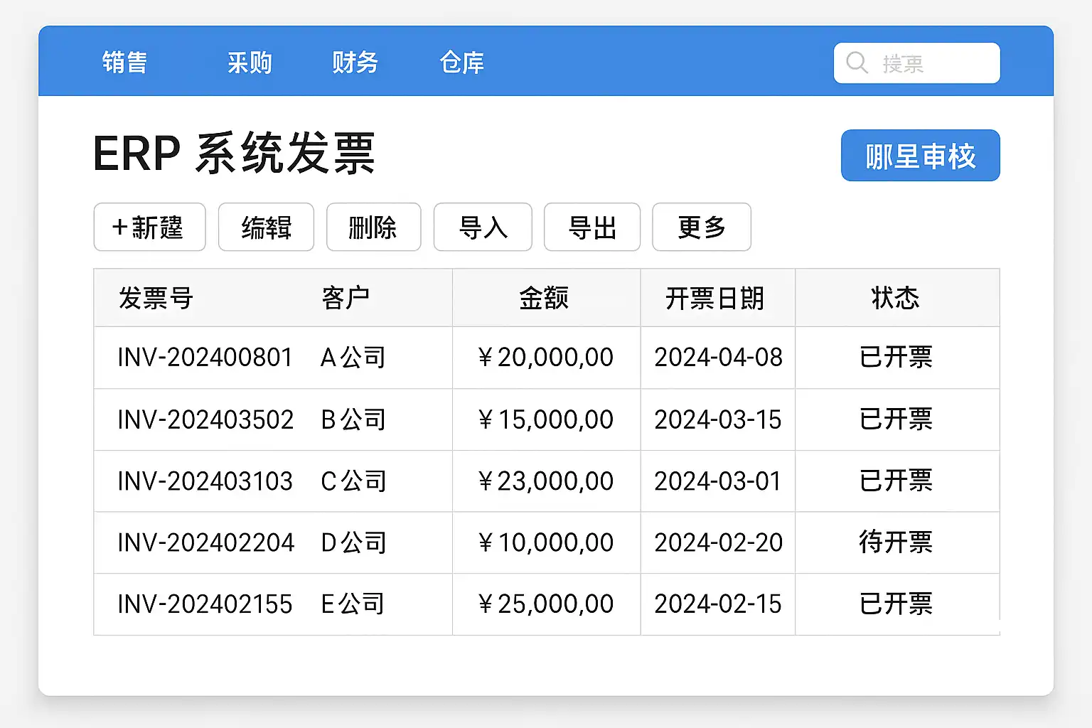 在大多数主流ERP系统(如SAP、用友、金蝶、简道云等)中,发票审核功能分布如下: