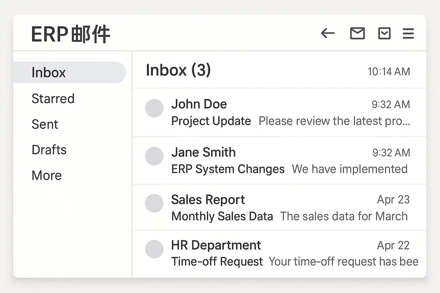 - 通讯录/协同办公区:部分传统型或大型定制化ERP,将内部信件与外部邮箱集成于通讯录或协同办公区域。