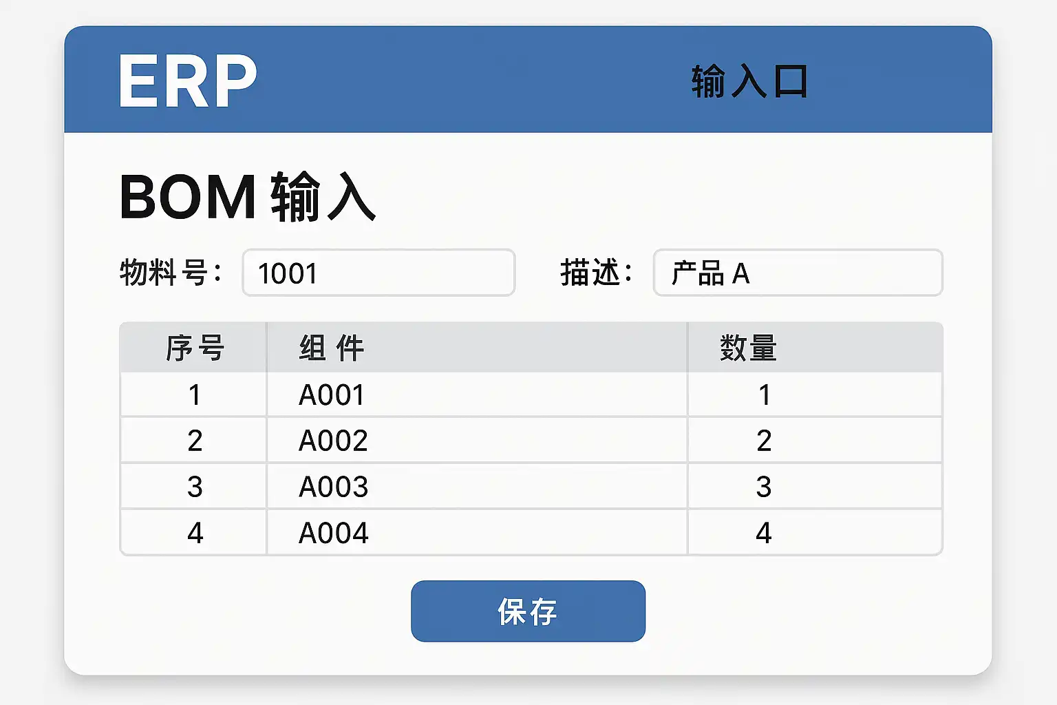 在ERP系统中,BOM(物料清单)数据通常输入到“物料管理”或“生产管理”模块下的BOM维护界面。具体位置根据不同ERP系统略有差异,但一般都提供专门的‘BOM管理’功能,用于定义产品结构、组成材料及数量。准确录入BOM是确保生产计划和库存管理精准的关键步骤。