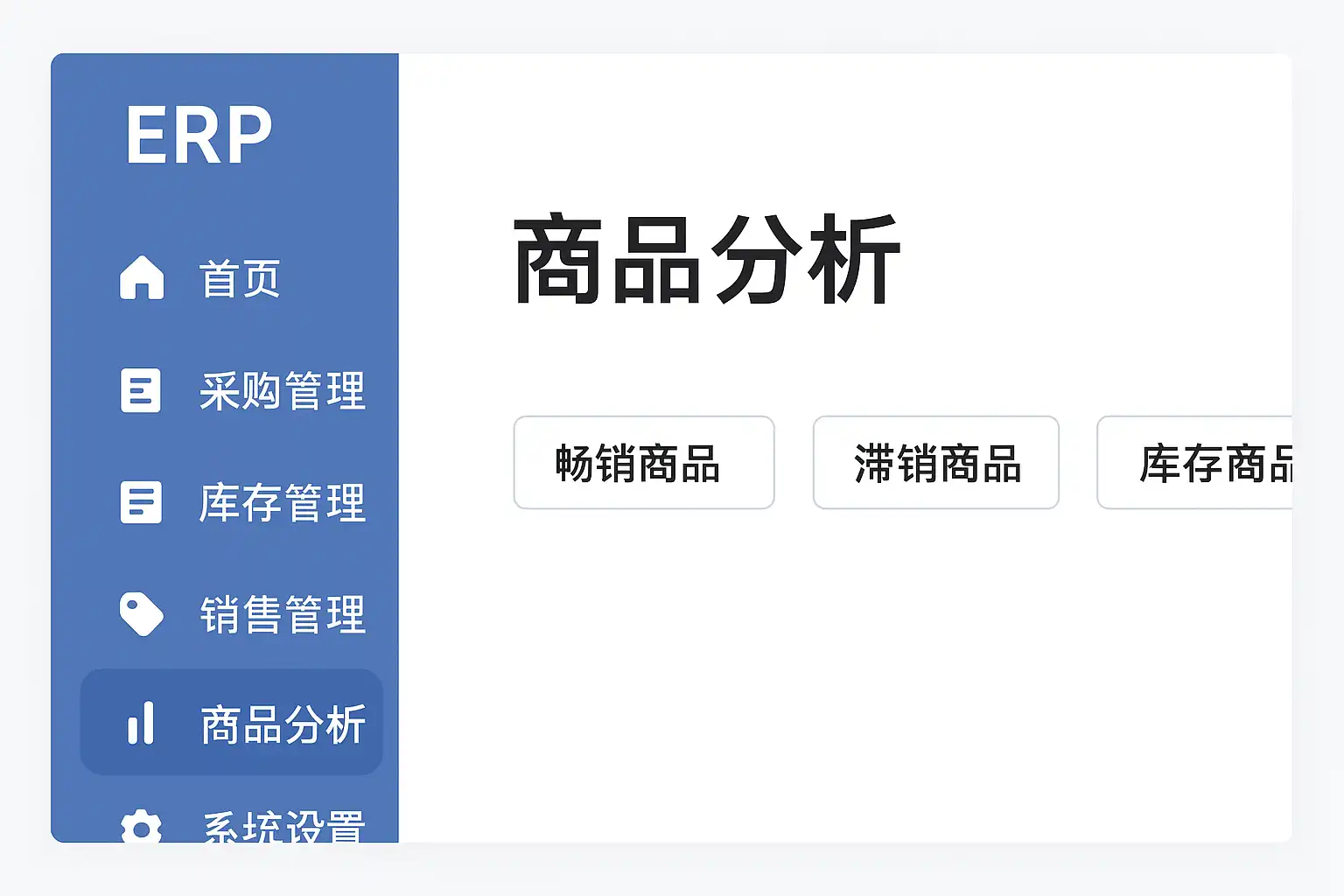 在不同厂商的ERP系统界面中,商品分析的位置略有差异,但大体分布如下: