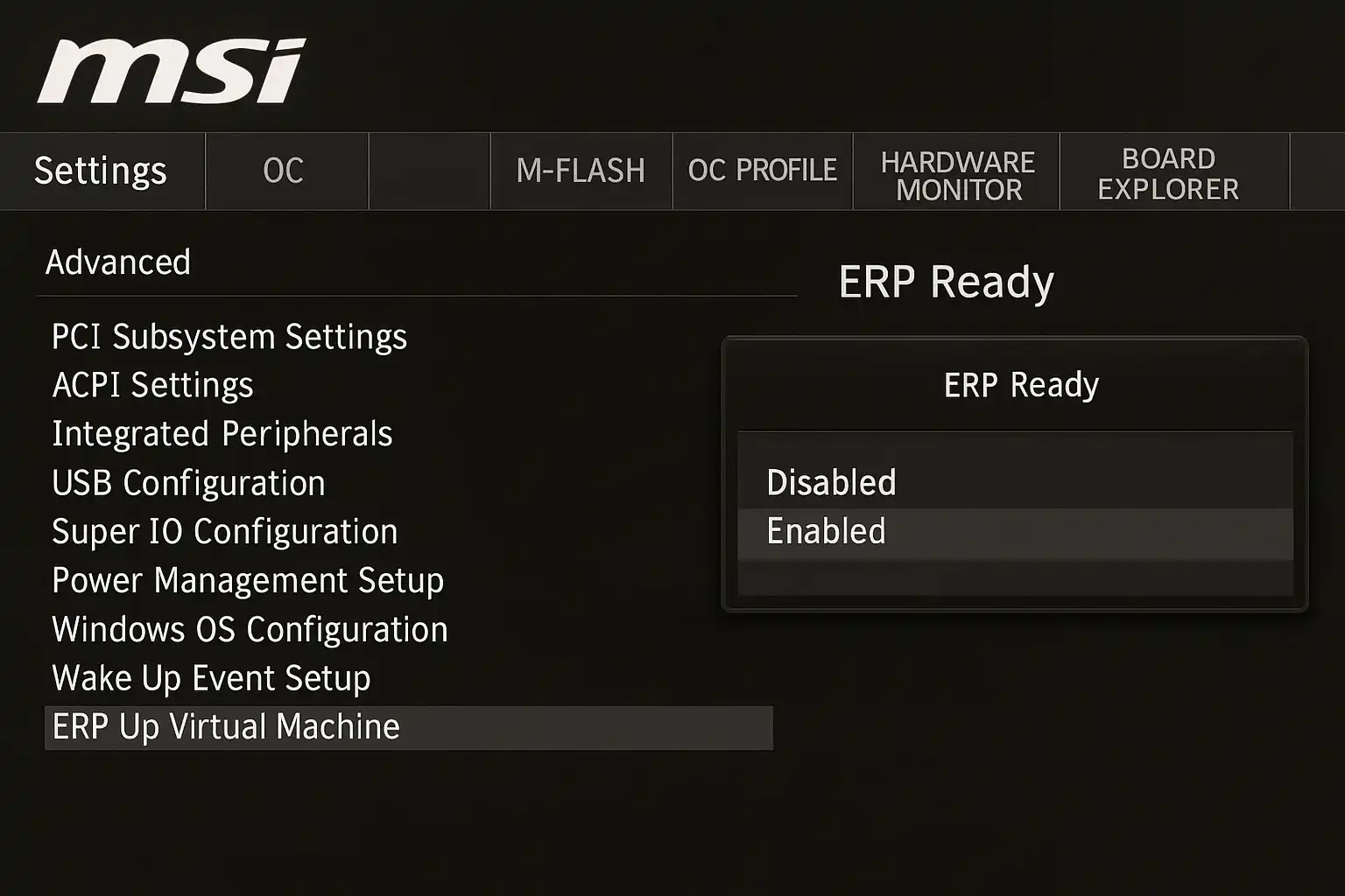 ErP(Energy-related Products)是欧盟制定的一项环保节能标准,旨在减少电子设备的待机功耗。微星BIOS中的ErP功能启用后,系统待机时的功耗可以降到1瓦以内,有助于降低电费和碳排放。例如,一台普通电脑开启ErP后,年均可节省约5-10千瓦时电量。对于注重绿色环保和节能的用户,这是一项非常实用的功能。