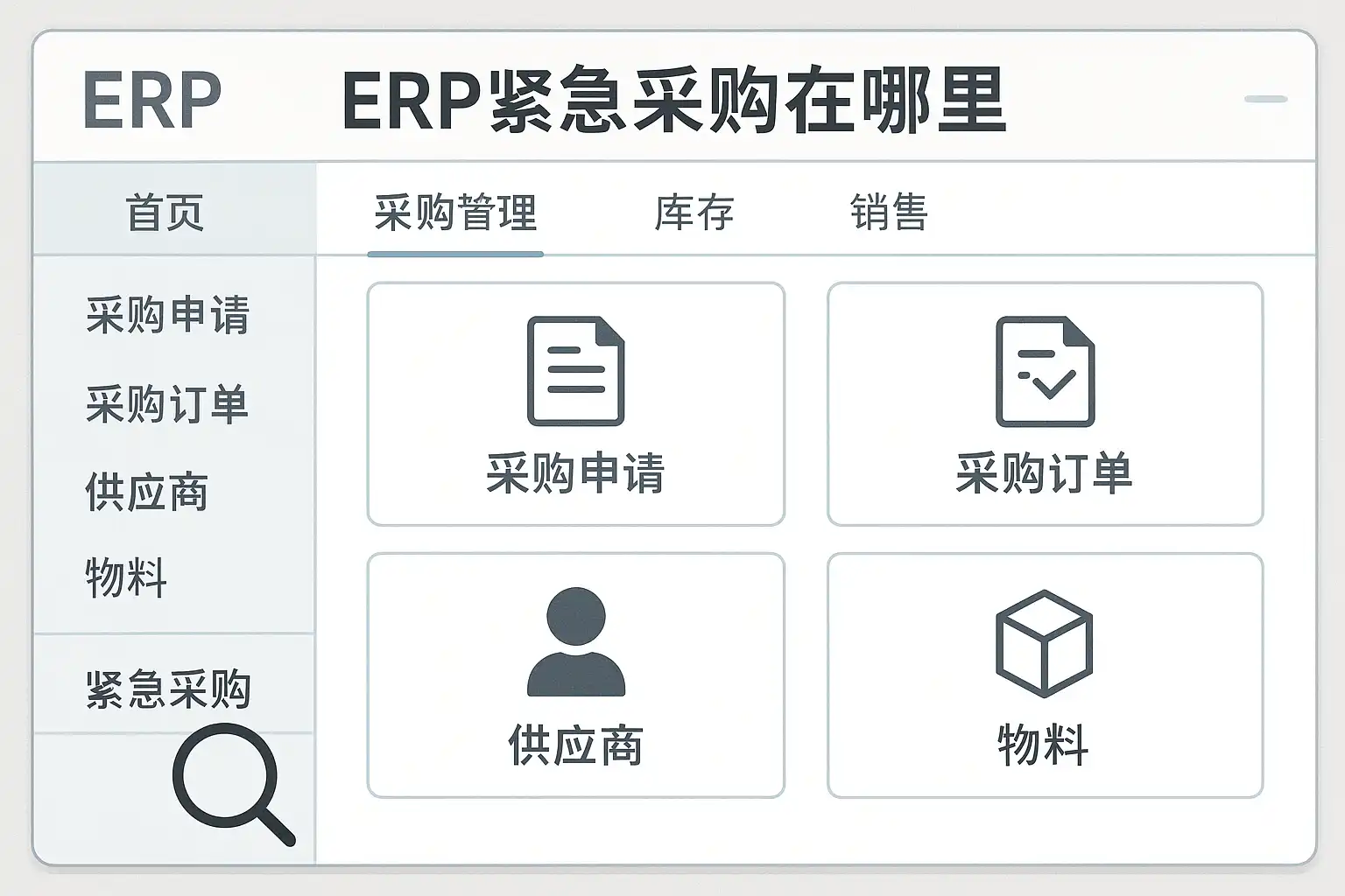 不同品牌及定制化程度的ERP系统,对应的紧急采购入口可能有所不同,但一般出现在以下几处: