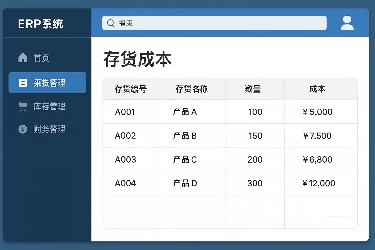 ERP系统中的‘库存报表’和‘财务报表’模块通常包含多种与存货成本相关的报告,如“存货台账”、“成本明细表”和“期间费用分析”。这些报表通过列表形式展现库存数量、单位成本与总金额,有助于企业实时掌握库存价值变化。例如,通过月度‘存货台账’,能准确追踪每批次物料的入库价和消耗情况,实现精细化管理。