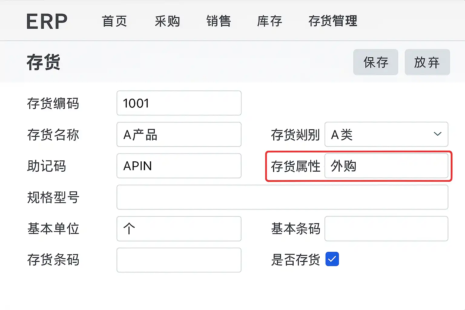 《erp存货属性在哪里》
