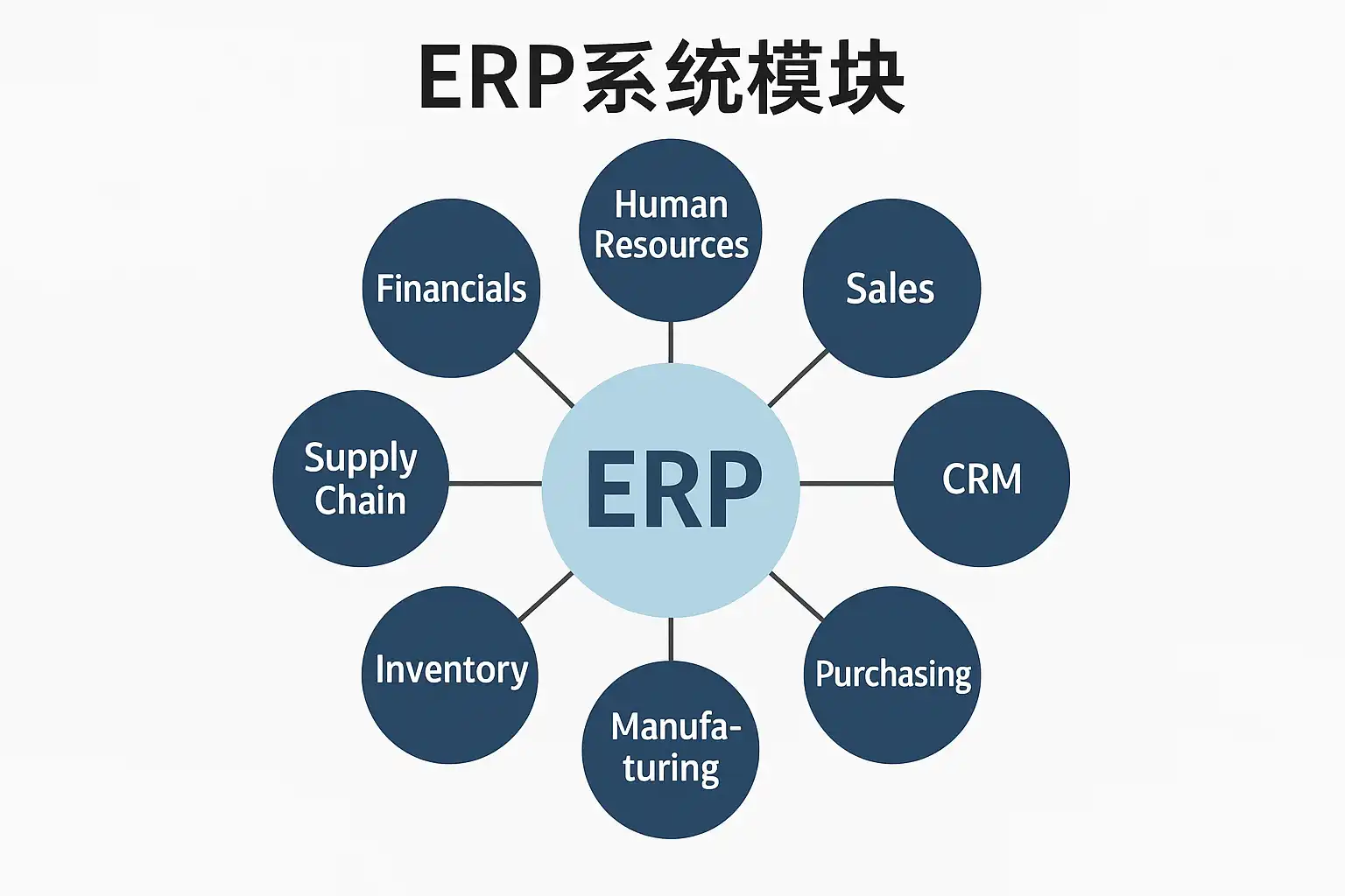 ERP系统模块通常包括财务管理、供应链管理、生产制造、人力资源管理和客户关系管理等。具体功能如下: