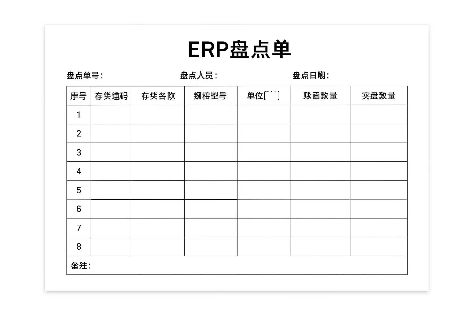 盘点单简介 盘点单是指企业在进行仓库实物清查时,用于记录实际库存数量与账面库存差异的重要凭证。它不仅反映了当前真实库存状态,也为后续的账务调整和决策提供依据。