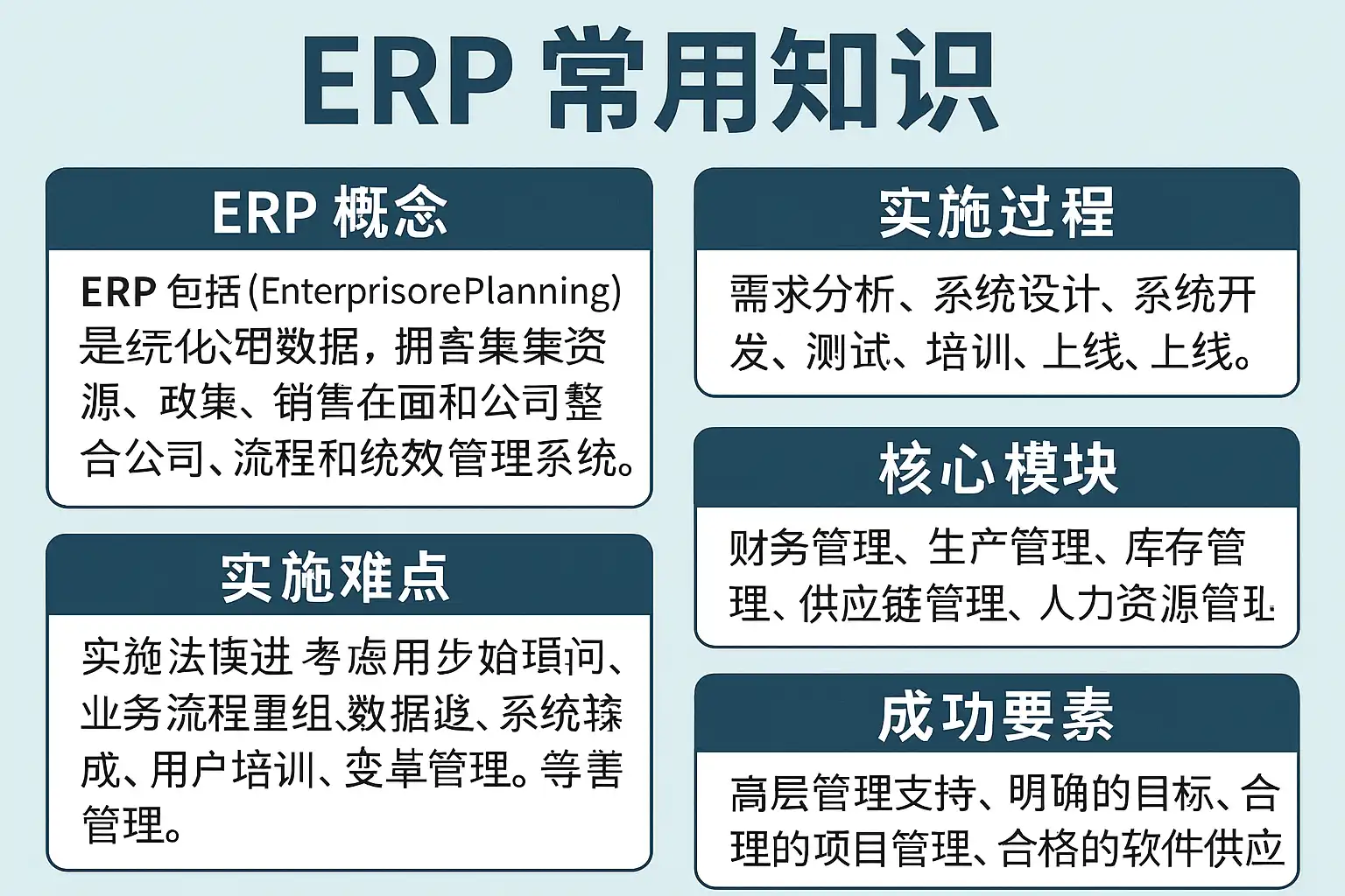 ERP常用知识主要涵盖以下几个方面: