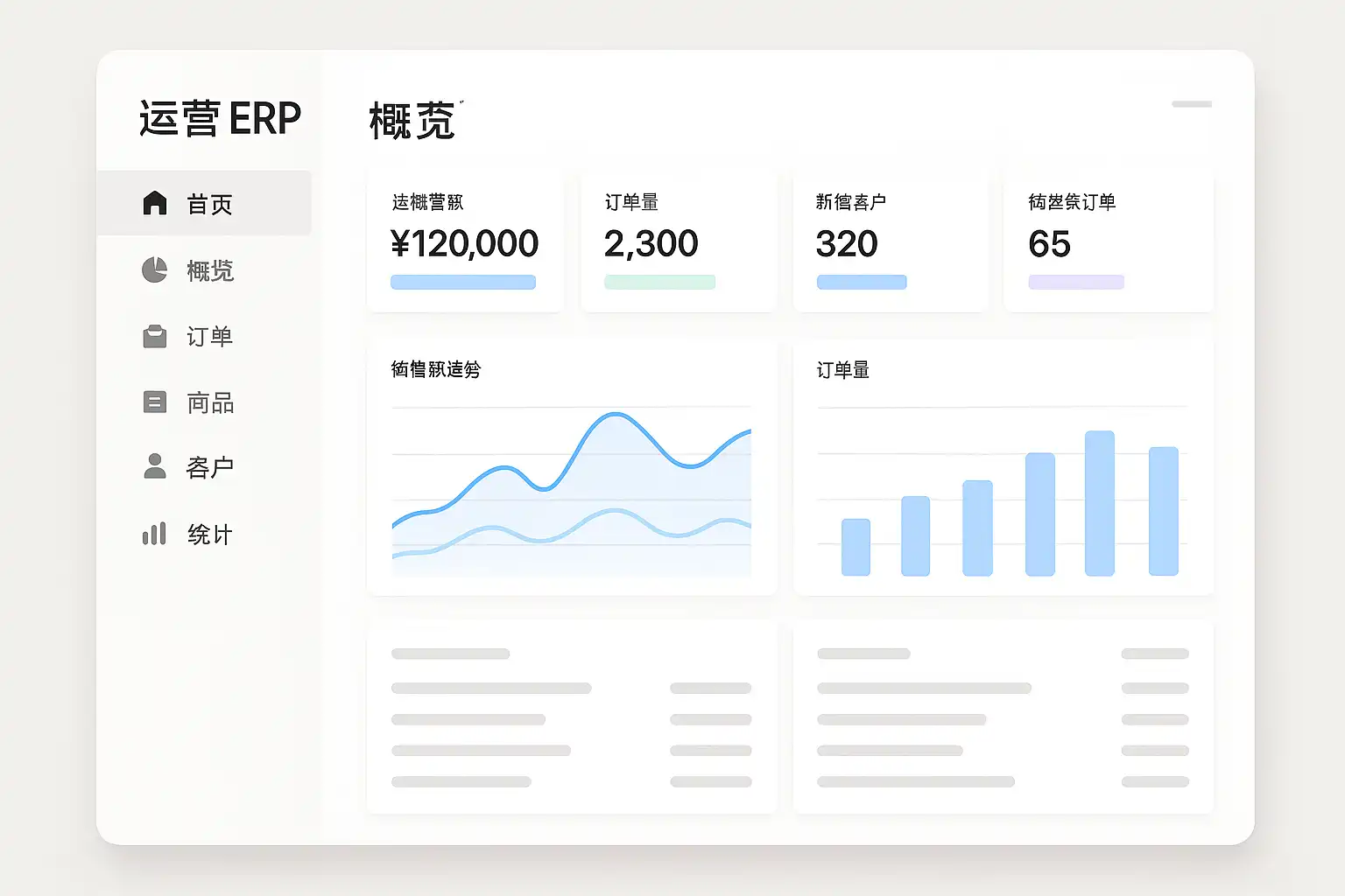 在运营ERP系统中,运营数据通常集中展示在“仪表盘”或“报表中心”模块。这里会通过图表和数据表格实时显示销售额、库存量、订单状态等关键指标。比如,通过销售报表可以看到每日销售趋势,库存管理模块则实时更新商品库存情况,帮助企业快速做出调整决策。