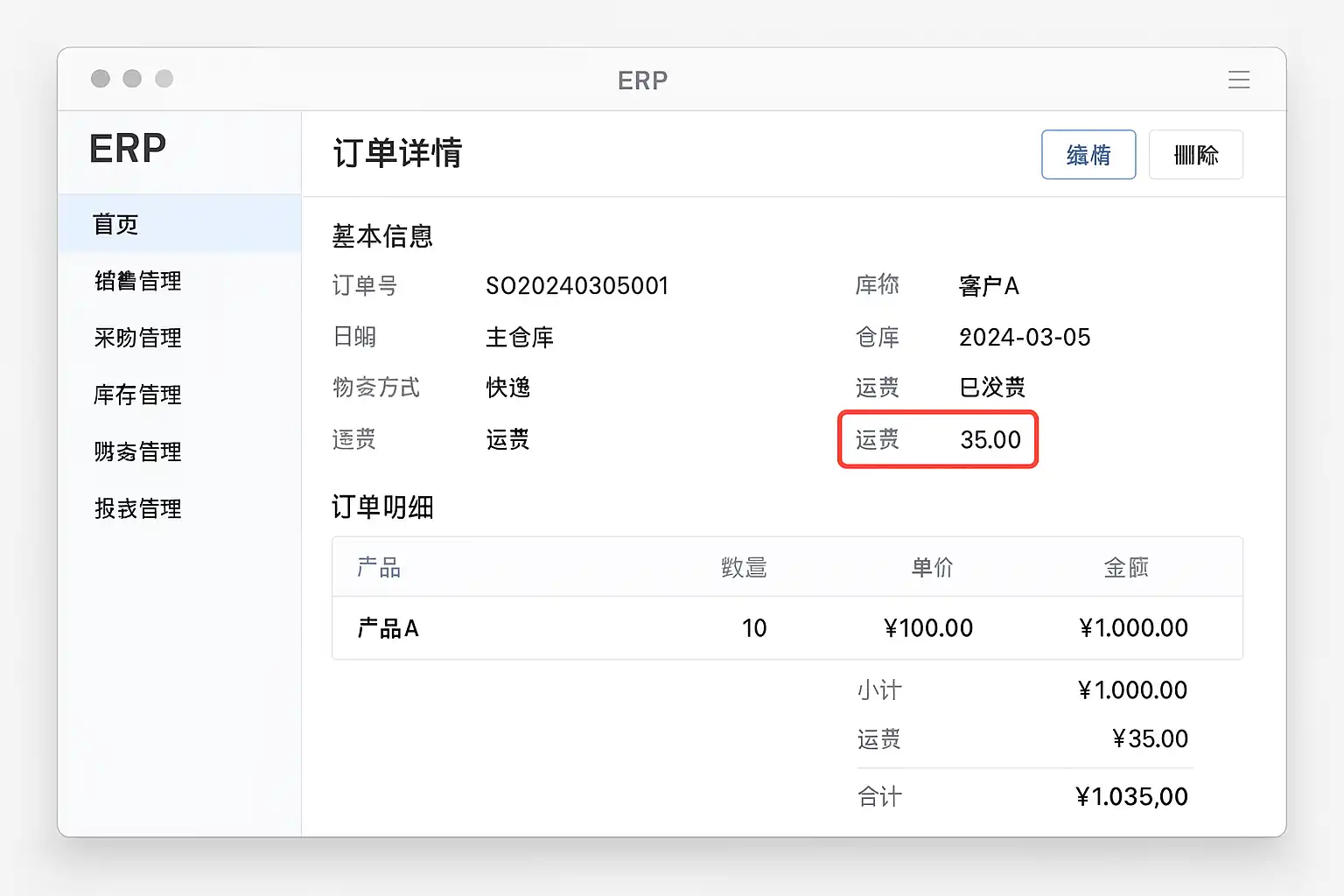 不同ERP系统对运费管理有着类似但不完全一致的处理方式。一般来说,主要有以下几种常见的存储与展示位置: