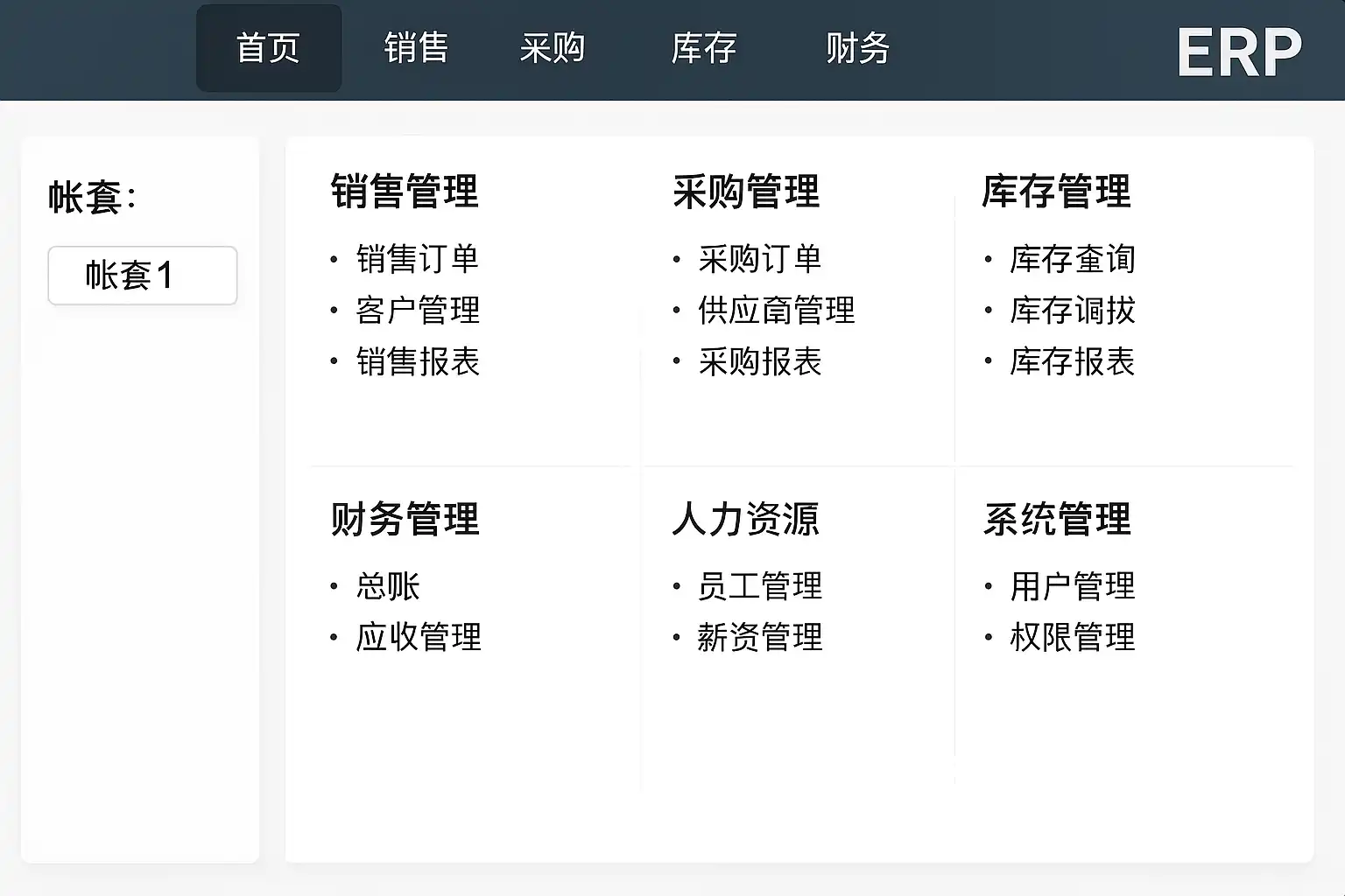 例如,某知名国产ERP系统在首页右上角直接展示“当前帐套”,方便用户识别切换。