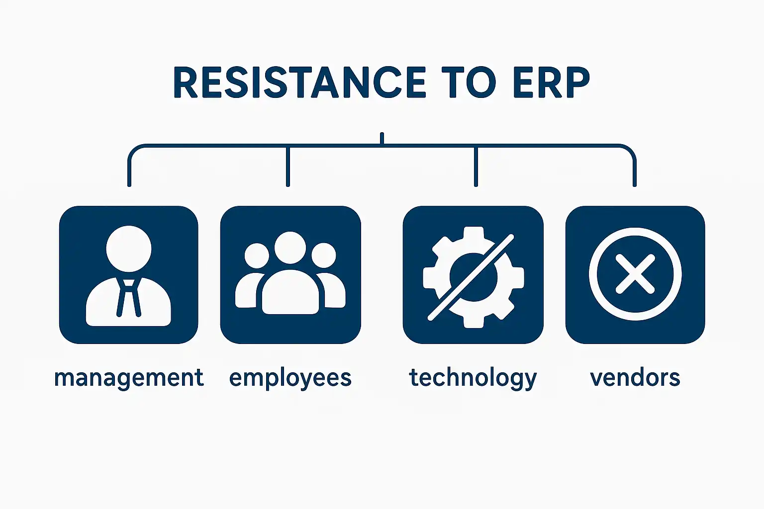 我在公司推行ERP系统时,发现员工反应不积极,项目进展缓慢。我想知道ERP的阻力究竟主要来自哪些方面?是否有具体分类和实例说明?