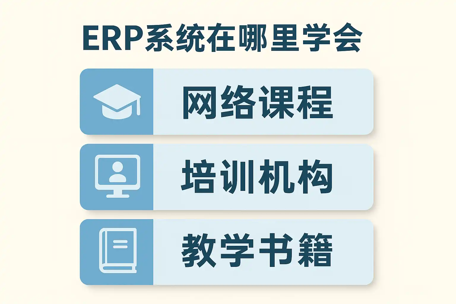 我想学习ERP系统,但不确定从哪里开始和选择哪种学习方式比较好。市面上有很多培训机构、在线课程和自学资料,我该如何判断哪种渠道更适合我?