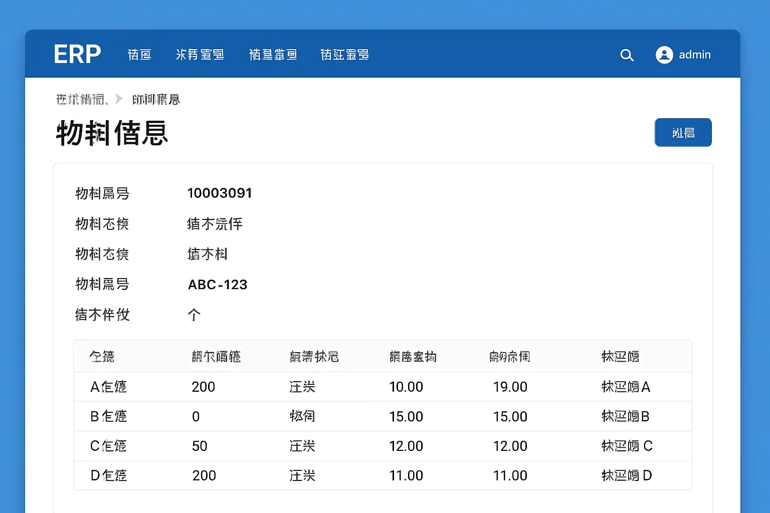 在ERP系统中,物料信息一般存储在“物料主数据”模块,具体表结构如“物料主文件表(Master Material Table)”中。该模块包含物料编码、名称、规格、单位等基础数据。以SAP ERP为例,物料信息主要保存在MARA(通用数据)和MARC(工厂相关数据)表中,通过这些结构化的数据表实现高效查询和管理。