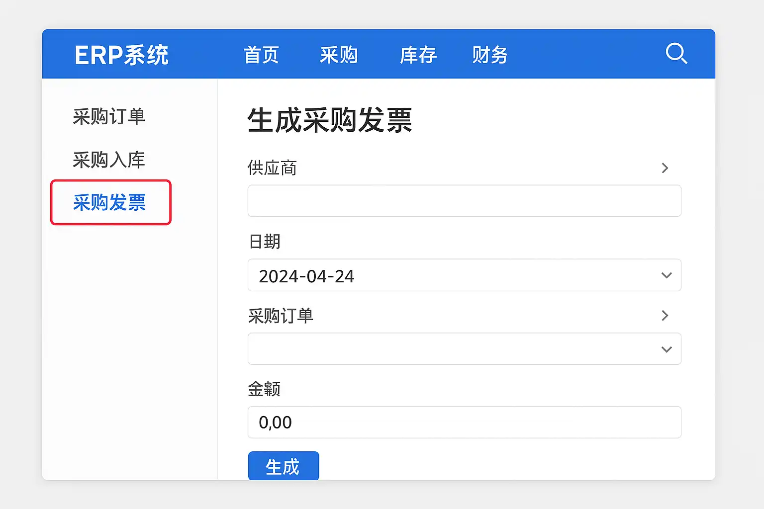 如何通过ERP系统高效生成采购发票?