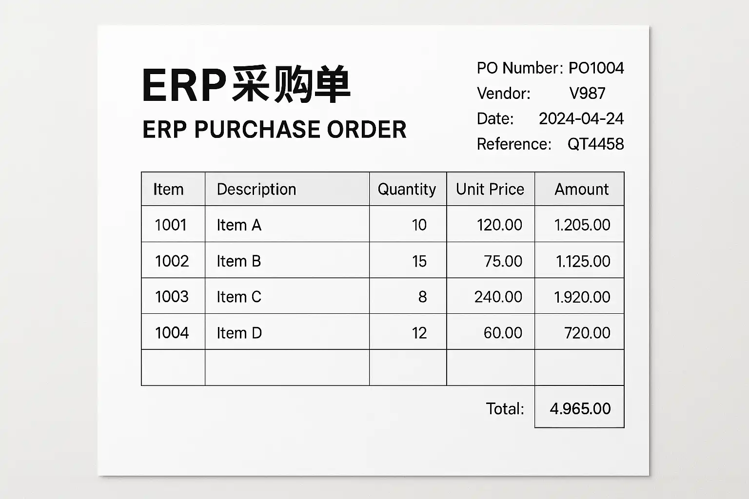 ERP系统中的采购单是企业进行原材料、商品等外部购入时的重要凭证。常见的来源方式有以下几种: