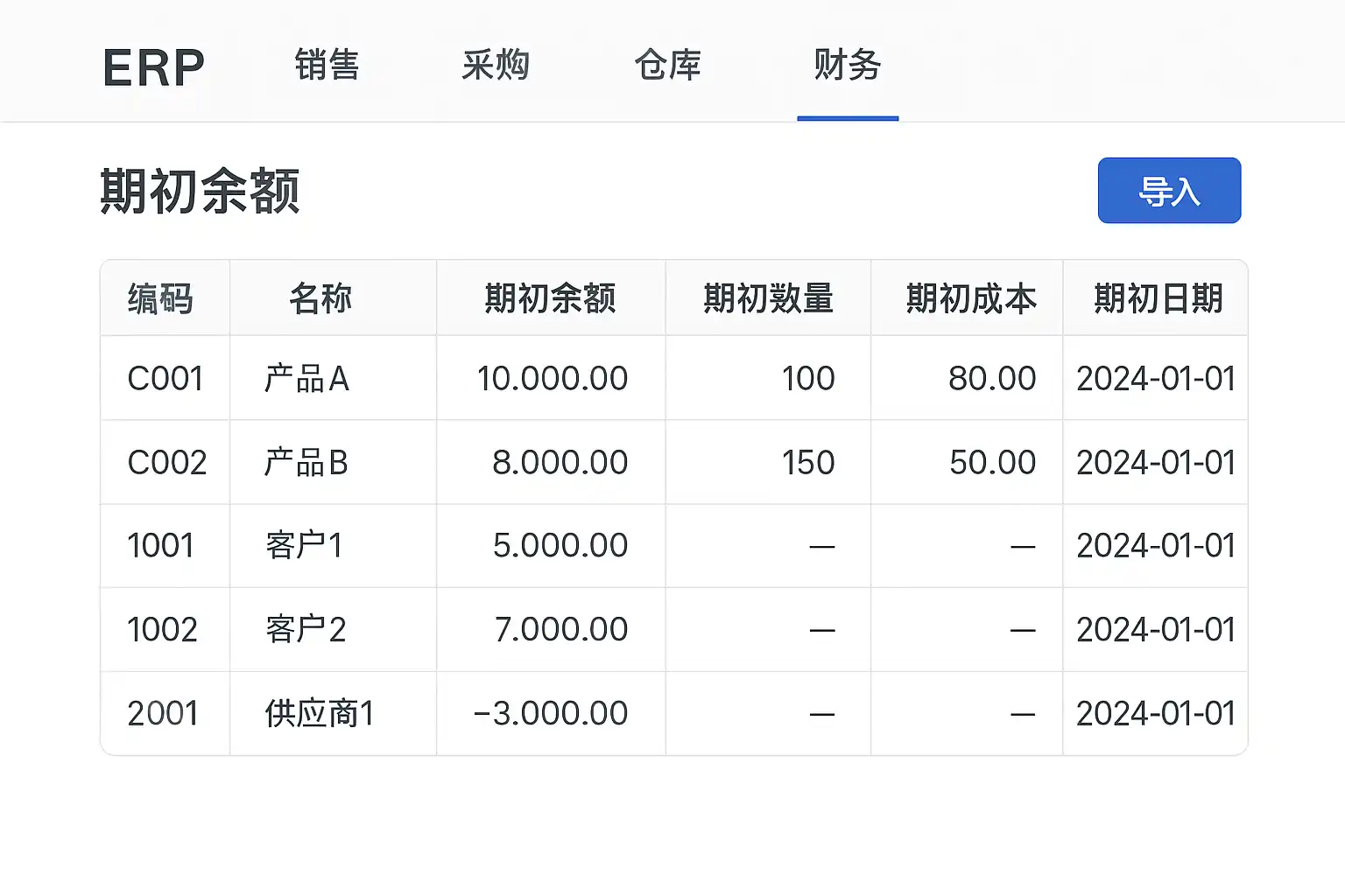 二、常见ERP系统中“期初余额”的位置