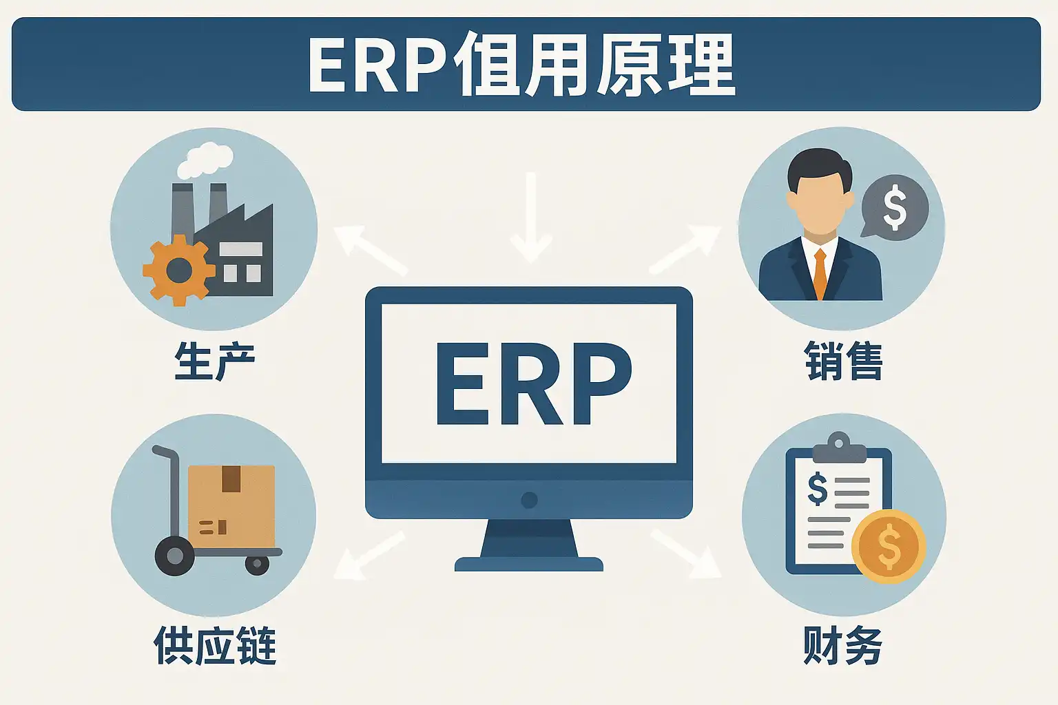 ERP(Enterprise Resource Planning,企业资源计划)是一种融合现代信息技术与先进管理思想的集成式管理平台。其核心原理在于将企业内部不同职能部门的数据集成到一个统一的信息系统中,以实现各类资源(人力、物资、财务等)的最优配置和高效利用。