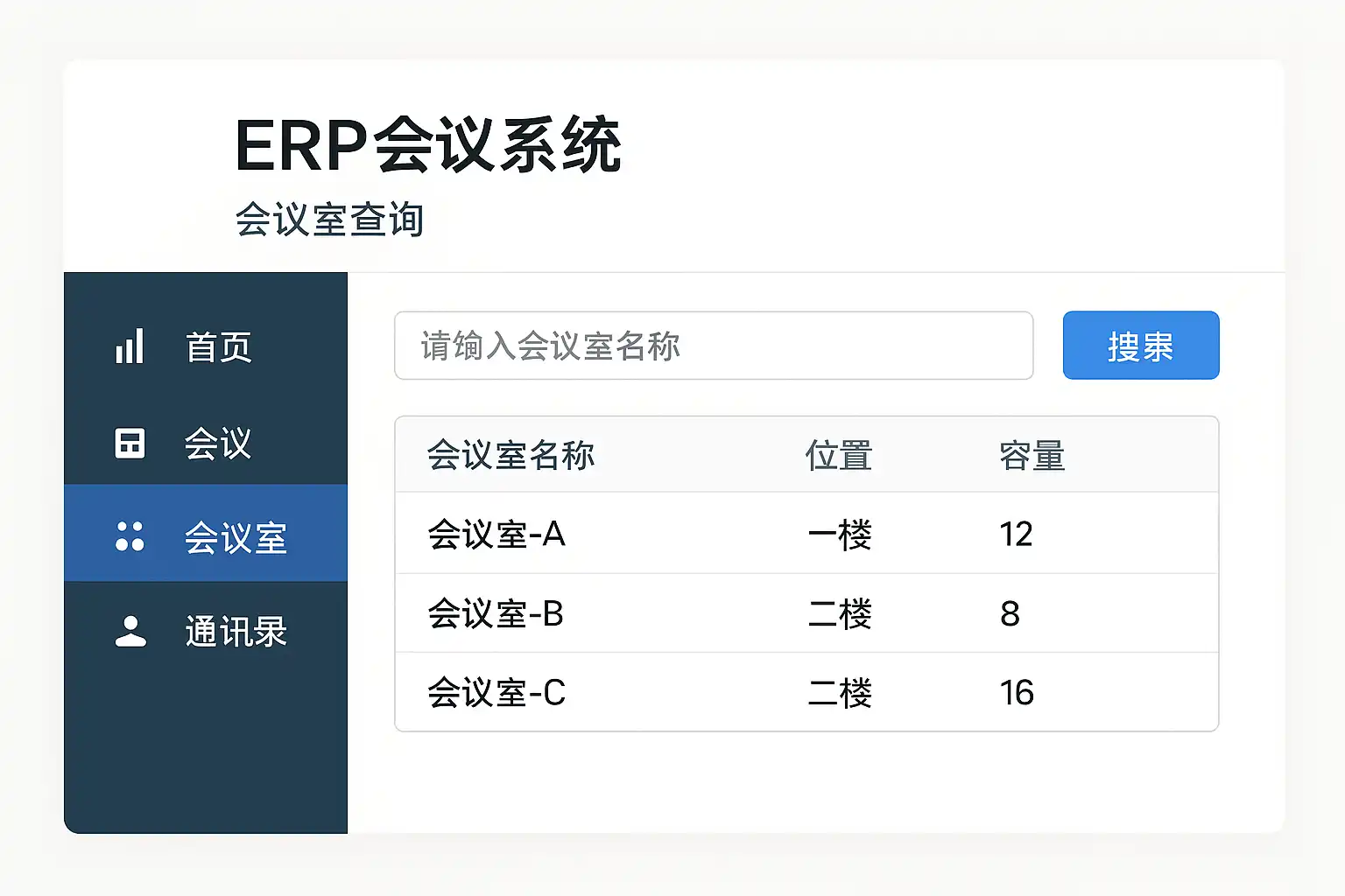 ERP(Enterprise Resource Planning,企业资源计划)会议系统,是指集成在ERP软件中的一套用于企业内部会务管理的功能模块。此类系统主要服务于企业日常的会议预约、参会通知、资料分发、纪要归档及后续任务跟进等环节,其核心目标是提升组织协同效率,减少手工操作和信息遗漏。