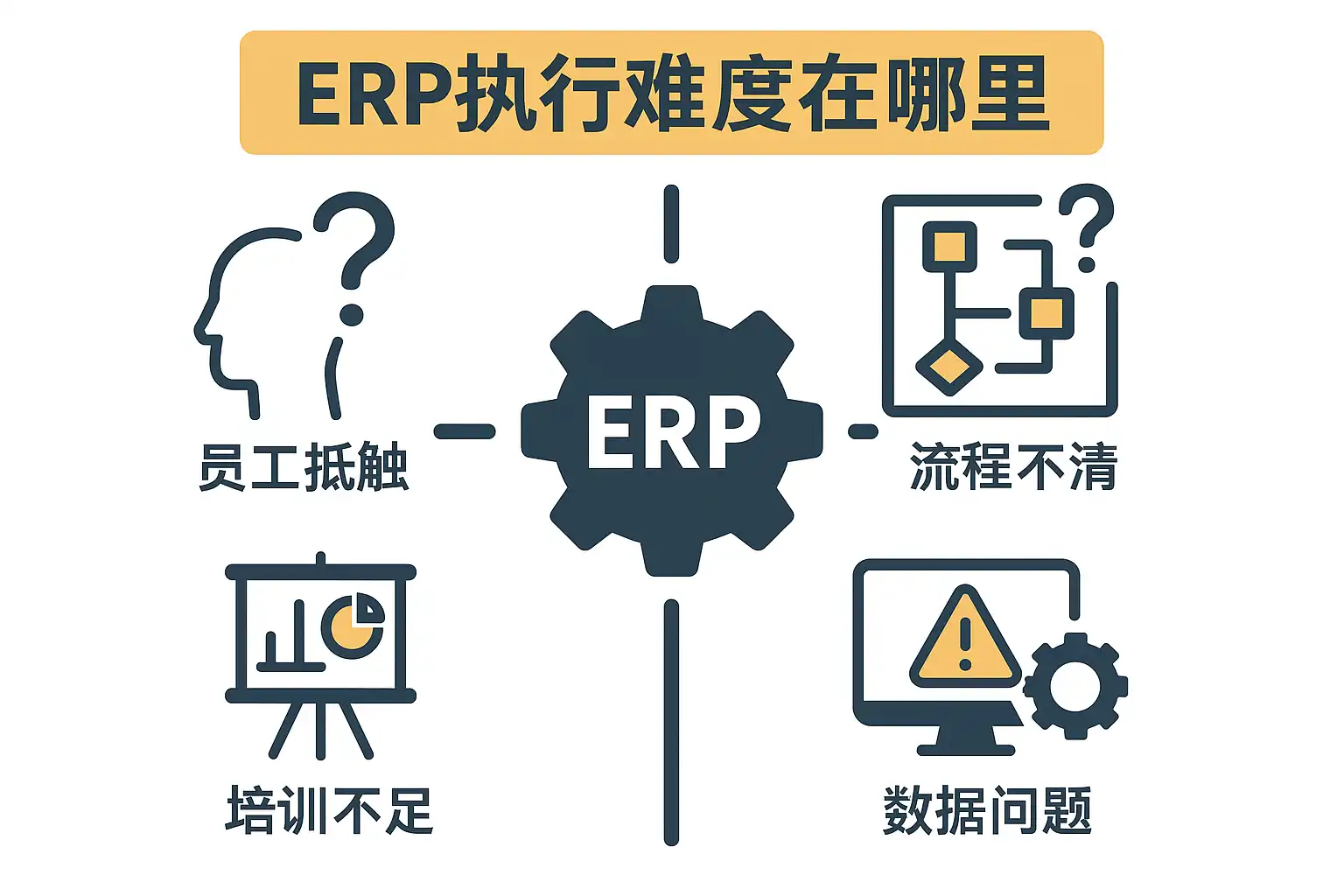 作为一名企业管理者,我在考虑实施ERP系统时,总是担心执行过程中会遇到哪些具体难题。能否详细说明ERP执行难度主要体现在哪些方面?