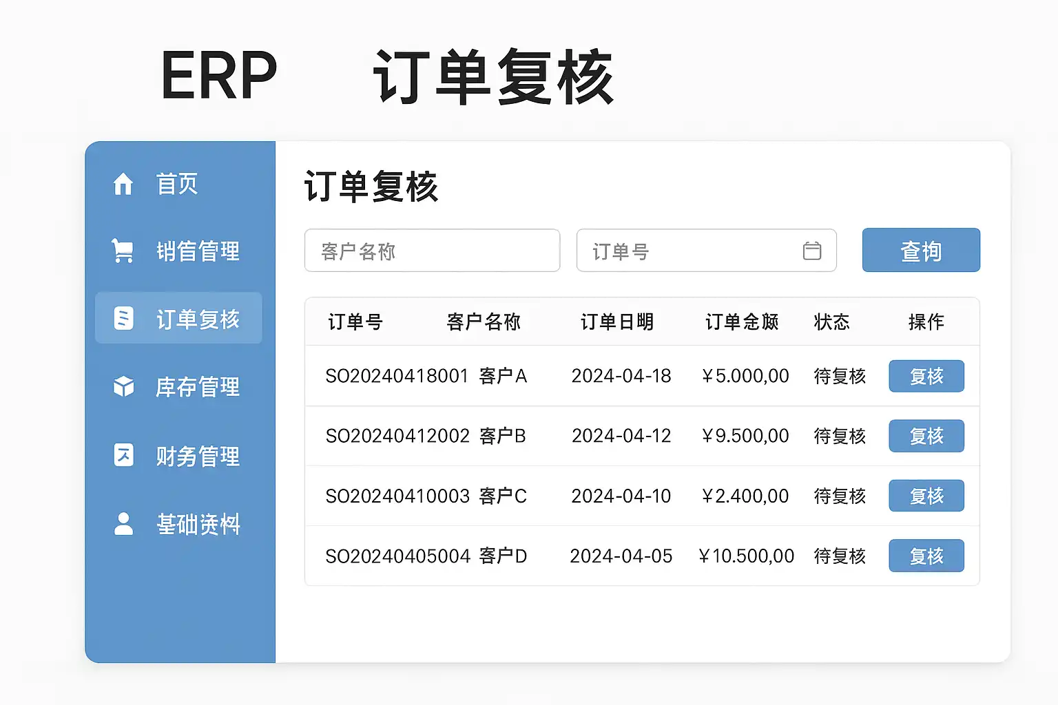 二、简道云ERP系统中“订单复核”具体操作位置解析