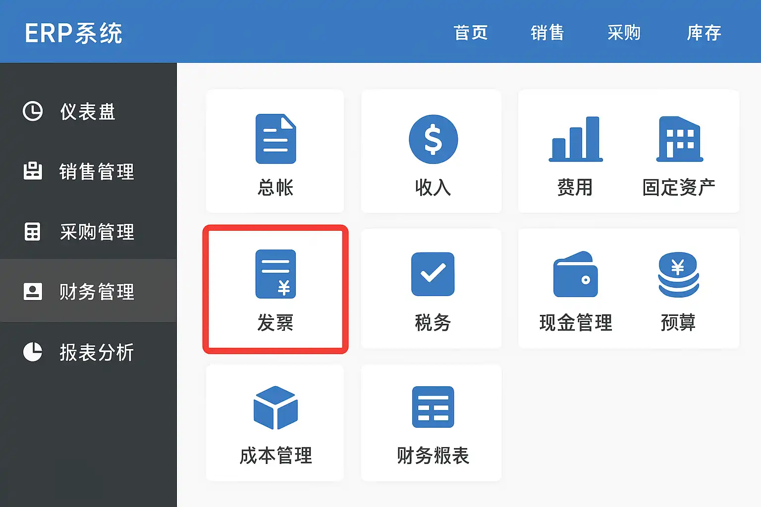 ERP管理系统中发票功能一般在哪里可以找到?