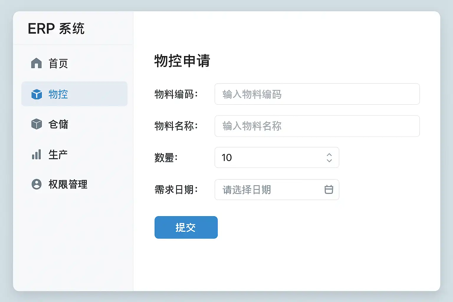 - 需求提出:由生产计划员、仓库管理员或相关业务部门填写所需物料信息。