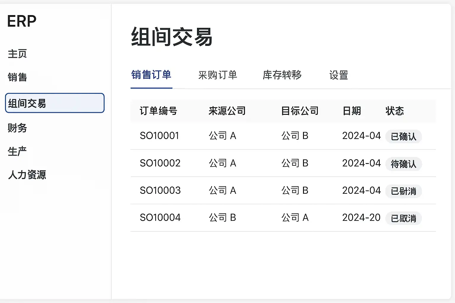 - 采购管理/销售管理:用于录入跨公司的采购订单和销售订单。
