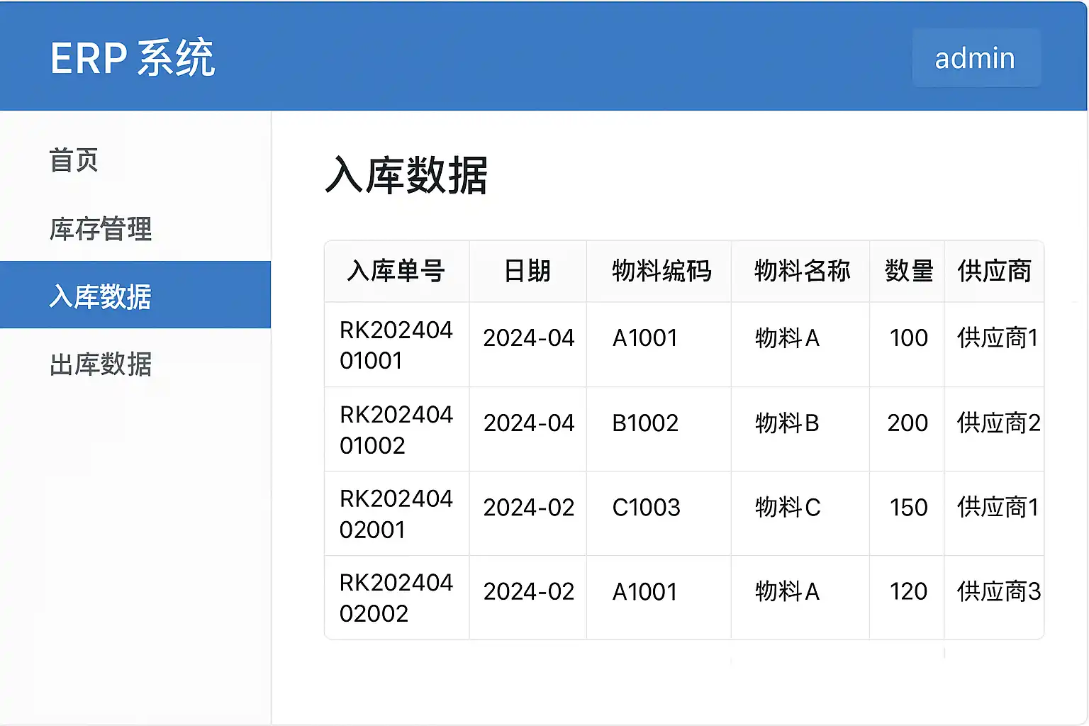 库存管理模块 几乎所有主流ERP系统均设有“库存管理”或“仓储管理”模块,这是存储和查询各类入库数据的主要入口。用户可在该模块下找到“入库单”、“采购入库”、“生产入库”等子菜单。