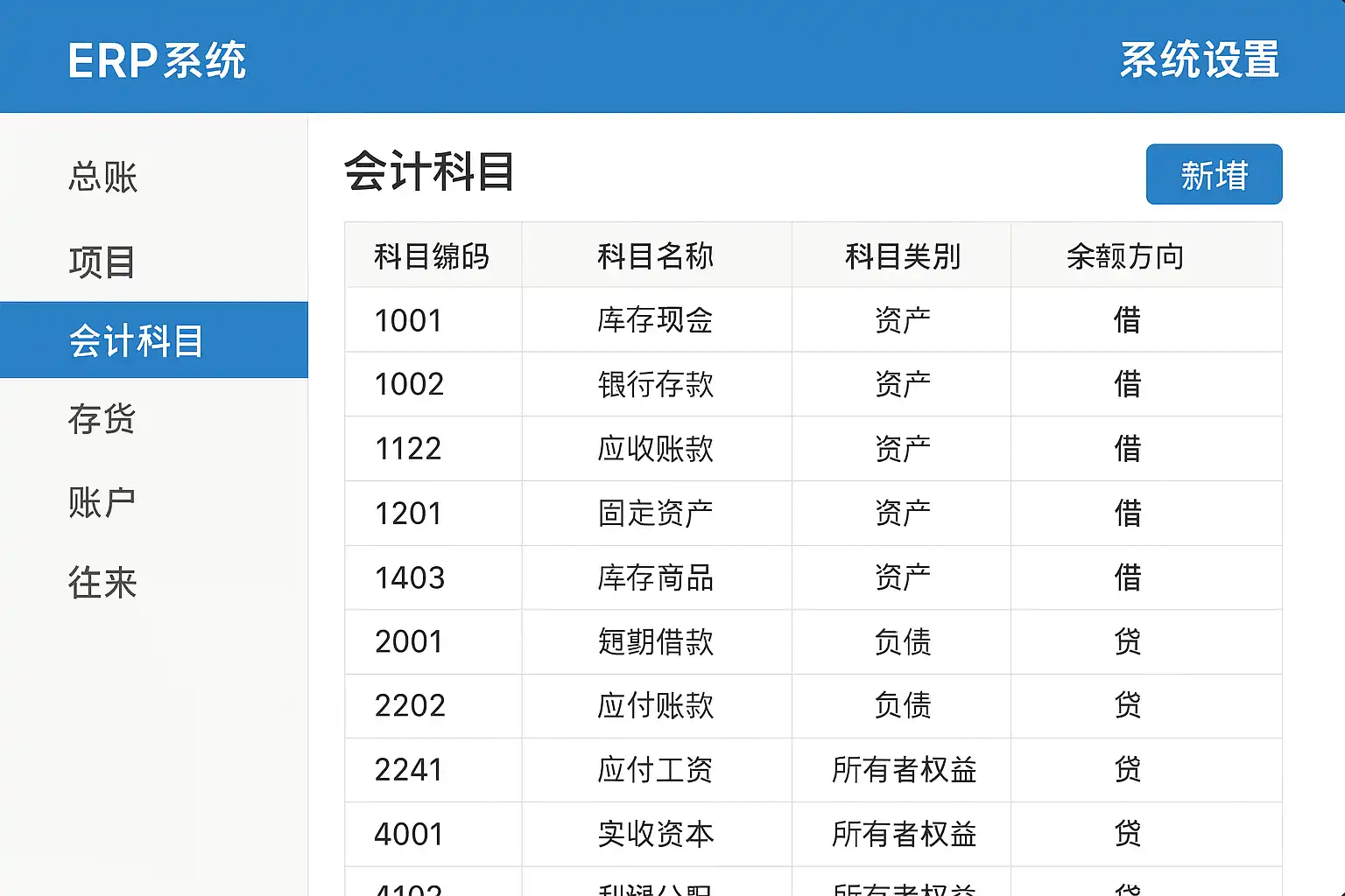 各主流ERP供应商(如SAP、用友、金蝶、简道云等)虽然界面设计不同,但其核心流程一致:都在财务相关模块提供了“会计科目表”管理入口。以下为常见系统对应位置汇总: