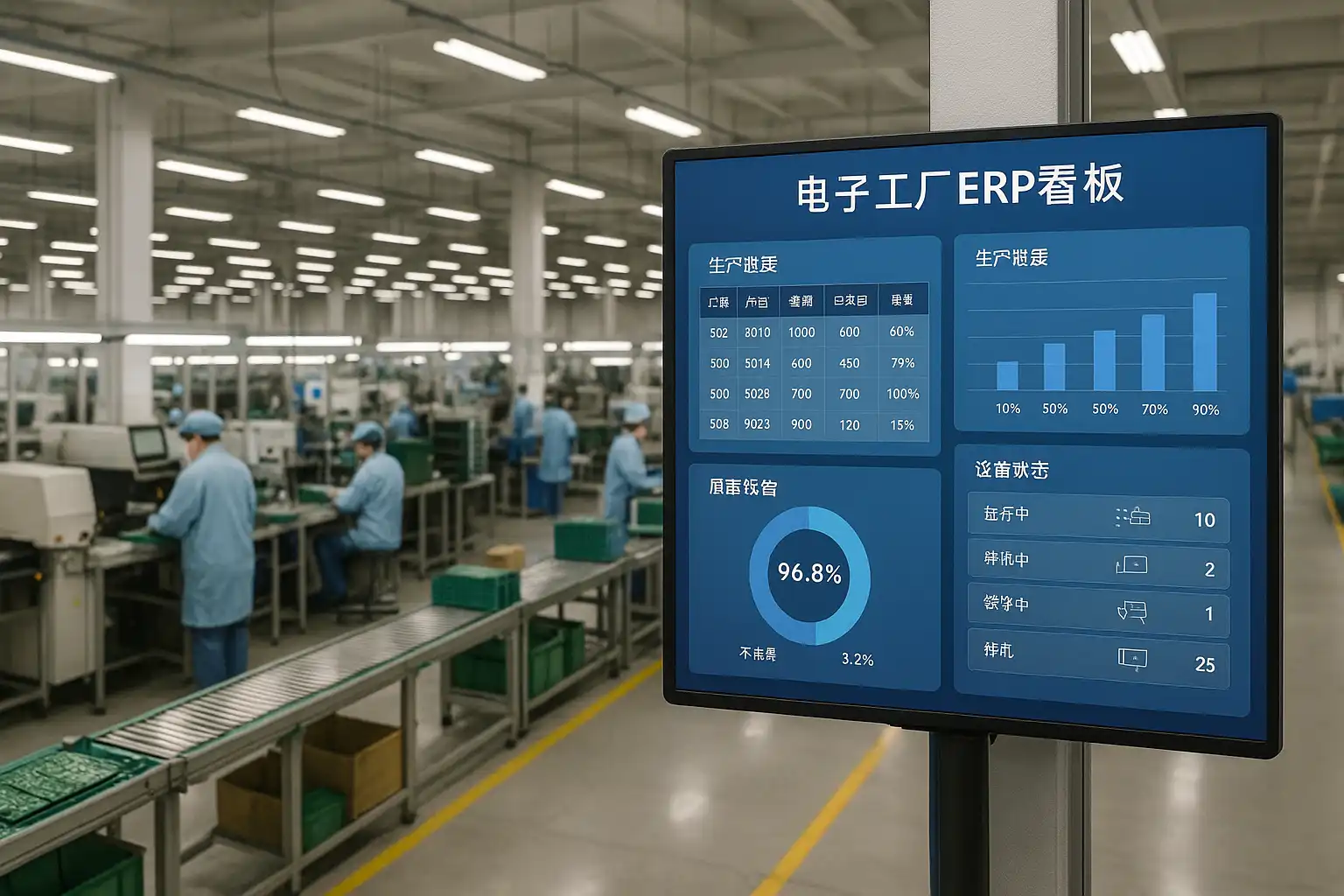 我想了解电子工厂的ERP看板上一般会显示哪些重要数据,这些数据如何帮助我更好地管理生产流程?