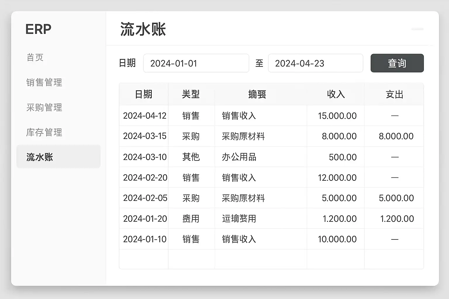 通常情况下,主流ERP系统将流水账(即企业日常各类收支往来的详细记录)集中存放在以下几个位置: