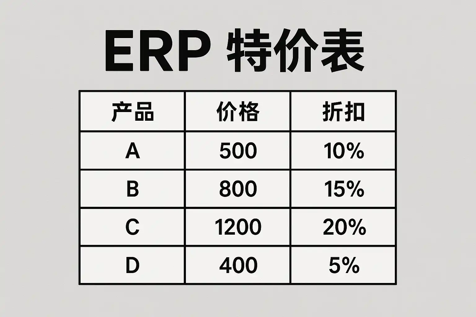 不同品牌的ERP系统在特价表设计上存在以下差异: