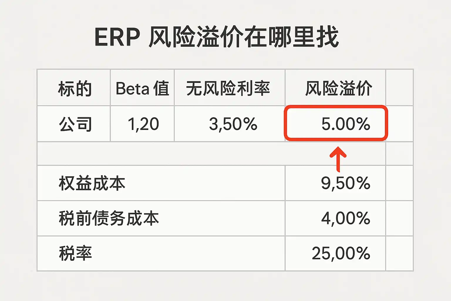 ERP(Enterprise Resource Planning)中的风险溢价主要体现在系统实施和运营过程中对潜在风险的估值上。通常,风险溢价可以从以下几个方面找到: