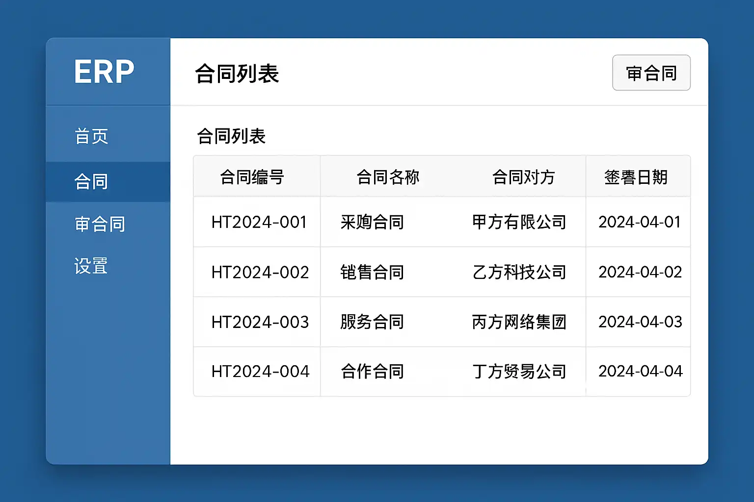| 搜索与筛选 | 输入关键字/选择状态/时间区间 | 支持多条件快速定位目标合同 |
