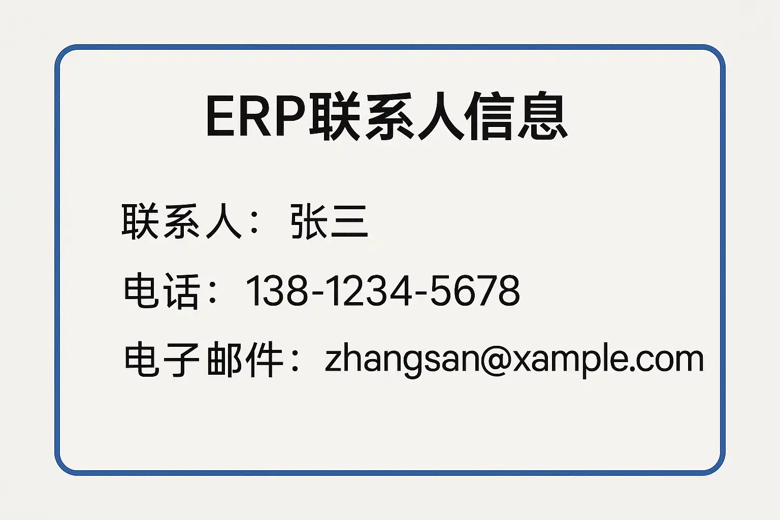 “ERP联系人信息”指的是在企业资源计划(Enterprise Resource Planning,简称ERP)系统中记录和管理的所有与业务相关联的人员联系方式,包括但不限于客户、供应商、业务合作伙伴以及公司内部员工等。这些信息对企业运营至关重要,直接影响业务沟通效率、订单流转速度及客户服务体验。