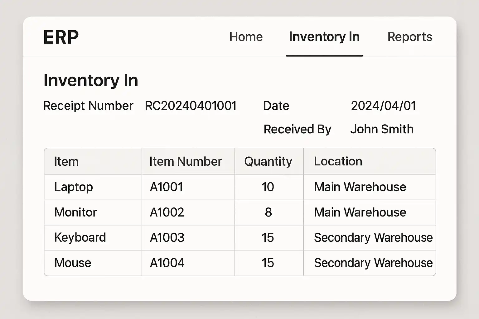 | 入库单据明细查询 | 在“库存管理”或“仓储管理”-“入库单”列表中,查找具体单据,并查看操作者字段 | 各类主流ERP |