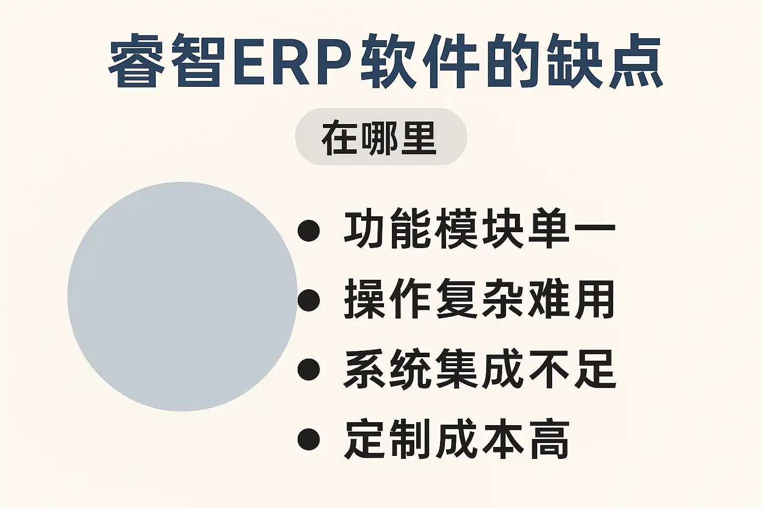我最近在考虑使用睿智ERP软件,但听说它有一些缺点,不知道具体表现在哪些方面?能不能帮我详细说明一下睿智ERP软件的主要不足之处?