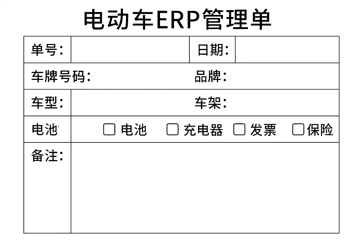 电动车ERP中的管理单主要包括以下核心信息: