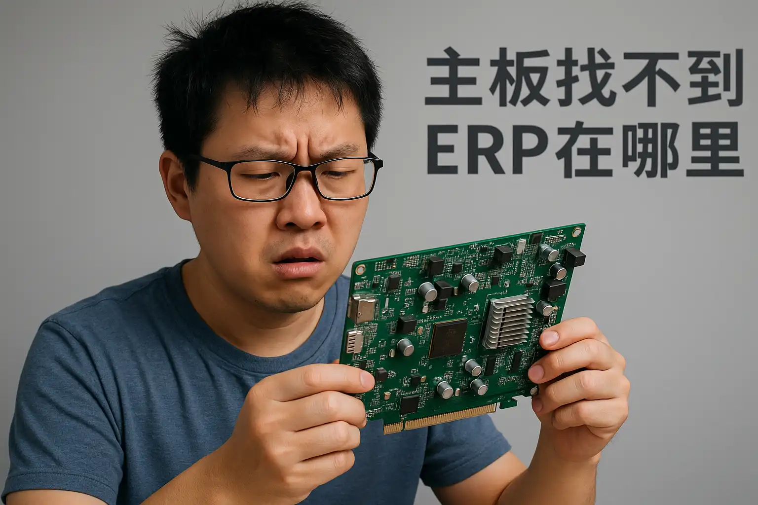 查找“主板上的ERP”是一种常见认知错误,因为所有企业级应用,包括ERP,均以软件形式存在,不会以物理形态出现在硬件电路中。