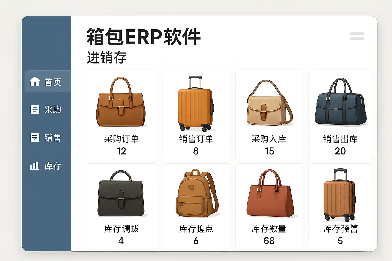 箱包行业由于SKU多样、季节性强,对仓储物流和订单处理有较高要求。传统手工方式难以实现高效管控,而ERP(企业资源计划)系统为行业提供了一体化数字化解决方案。其中,“进销存”是ERP应用最核心的部分,涵盖采购入库、销售出库及库存动态管理。