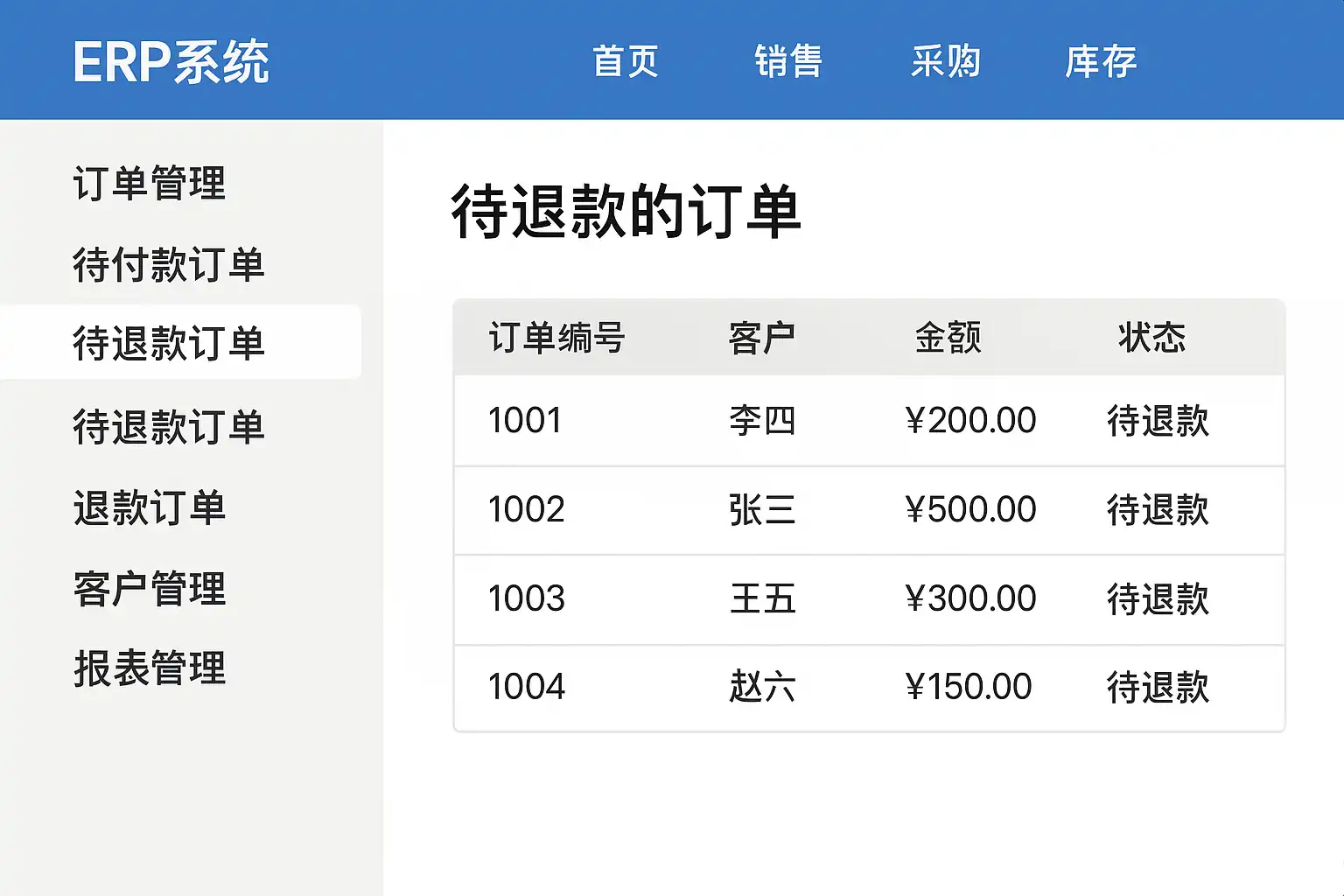 不同企业采用的ERP系统各具差异,但整体上都会提供针对“售后/退货/退款”环节的数据追踪。以下表格列出了主流ERP系统中关于待退款订单常见的位置: